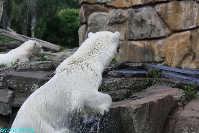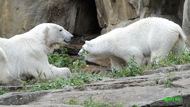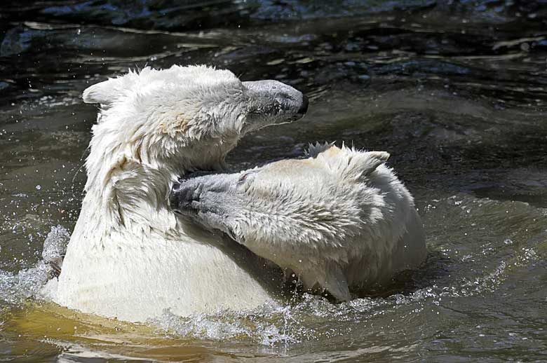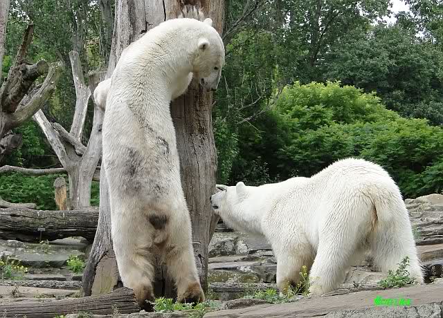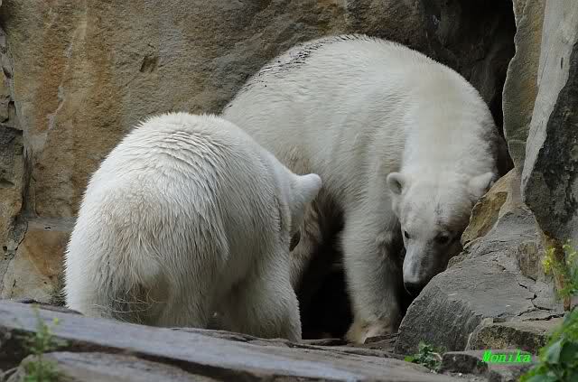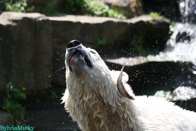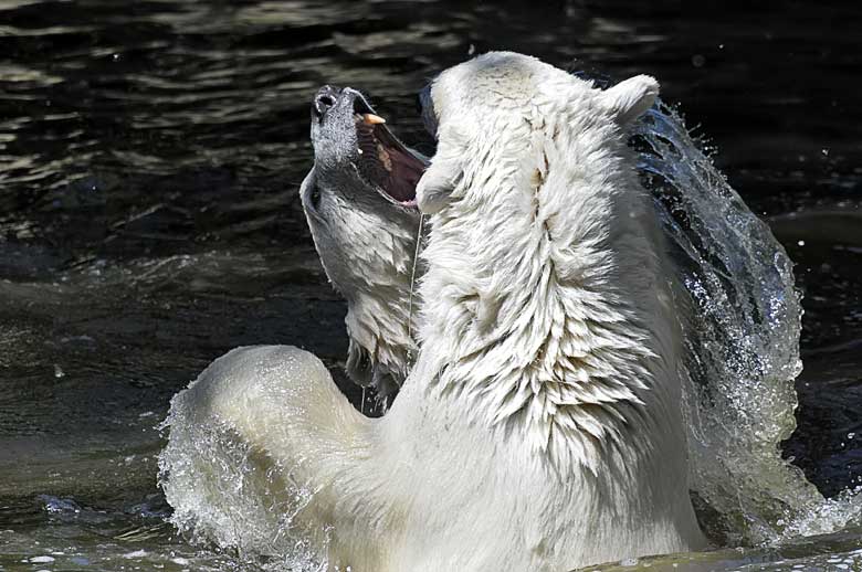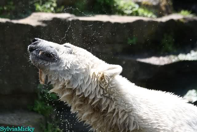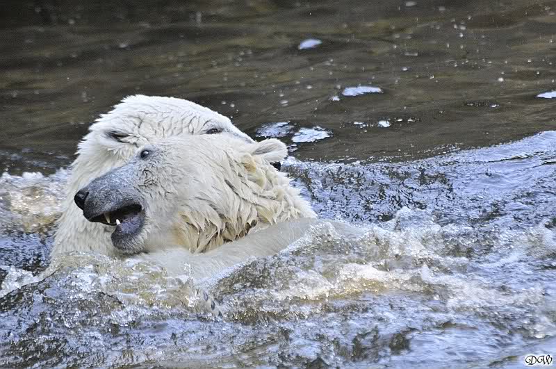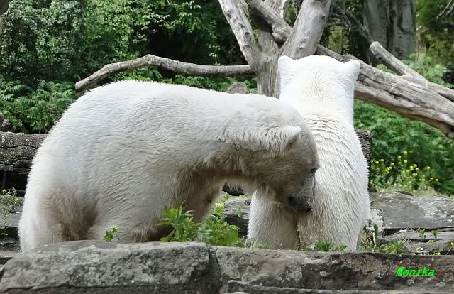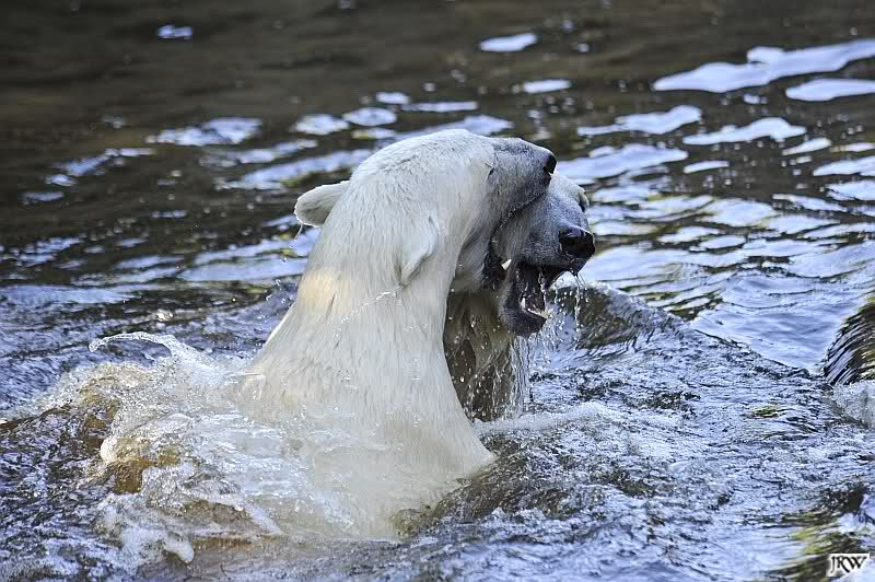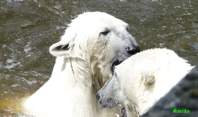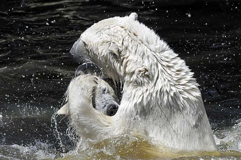 Danke, Frans, für die Wahnsinnsaufnahmen. Der Blick in das Maul eines Eisbären flößt schon Ehrfurcht ein. Um so erstaunlicher ist es, das sich Giovanna und Knut gegenseitig nicht weh tun, obwohl sie sich immer im Nacken das Anderen *festbeißen*. Aber es ist alles Spiel und Training fürs Leben.