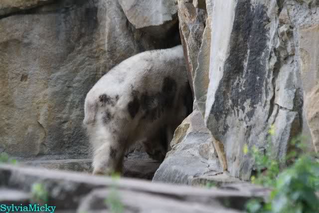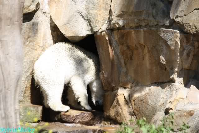 Kurz vor der Fütterung versuchte Knut in die Höhle zu gelangen. Gianna lag.