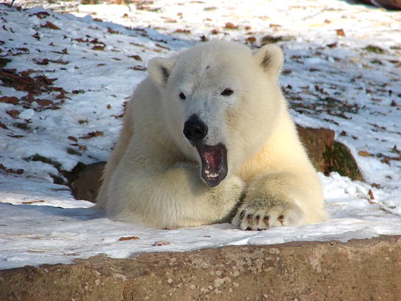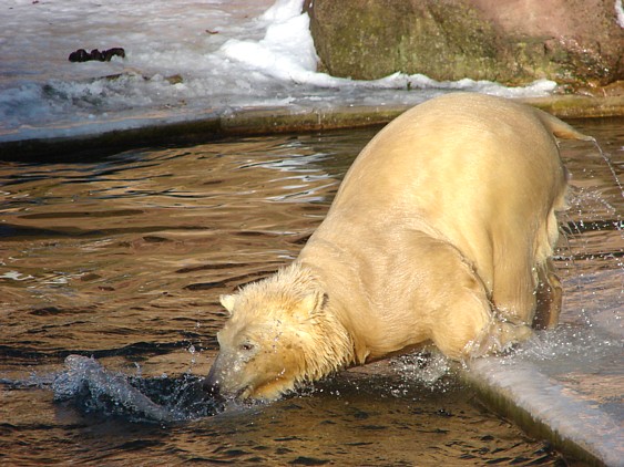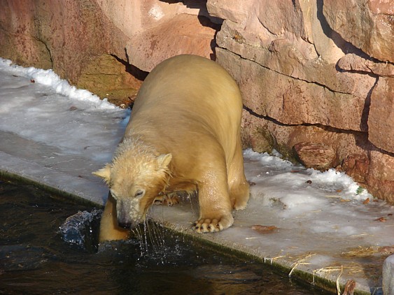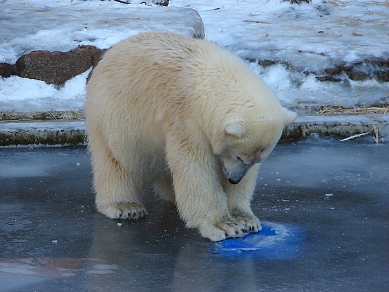 Es tut gut zu sehen, dass Flocke klar kommt.Sie ist eben doch pfiffig! Gut so. Es wäre sehr traurig, wenn der Neue ( Rasputin fällt mir auch noch schwer, bei dem Ende,welches der fand...)Flocke Schaden zufügte. Man wird sie sicher auch zum Züchten verwenden, auf kleinem Platz mit andren Eisbären(also eisbäruntypisch)halten und da muß sie sich behaupten können.