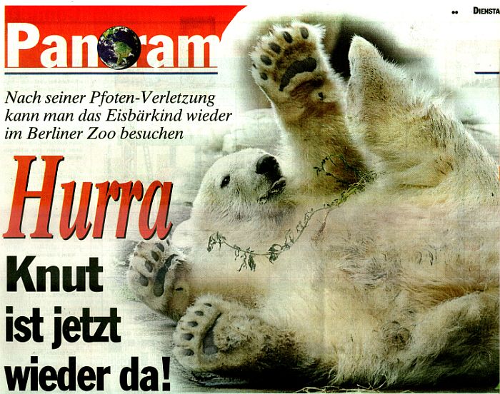 Die Fotos sind sosnt wieder so lebensecht, am liebsten möchte man Knuti streicheln. Leider geht dies nicht.