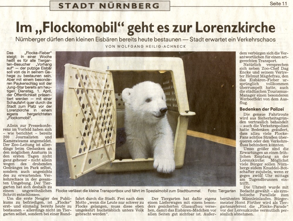 Auch zum Thema Felix konnte ich bisschen was erfahren. Zumindest ist Flockes Vater noch in Nürnberg und wohl in einem Käfig eingesperrt. Wohin seine Reise geht, wollte er mit einem grinsenden Gesicht nicht verraten. Nur so viel "Er kommt zu zwei Eisbärendamen". Wann es losgehen wird wollte er auch noch nicht sagen, aber es klang so, als würde es nicht mehr lange dauern. Ein bisschen flau sei ihm schon im Magen sagte, der Vizechef des Tiergartens: "Wir hoffen alle, dass wir bei den Planungen für die kommende Woche alles richtig gemacht haben.