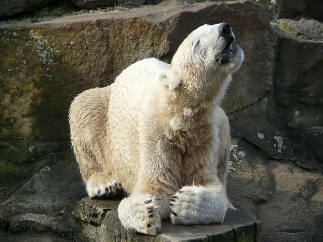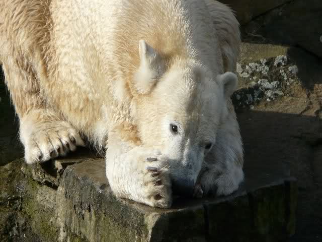 Guten Tag an alle Knut Freunde. Bevor es gleich wieder in den Zoo geht, trotz des miesen Wetters, noch einen Gruß aus Knut City, und ich wünsche Allen einen schönen Sonntag Nachmittag.