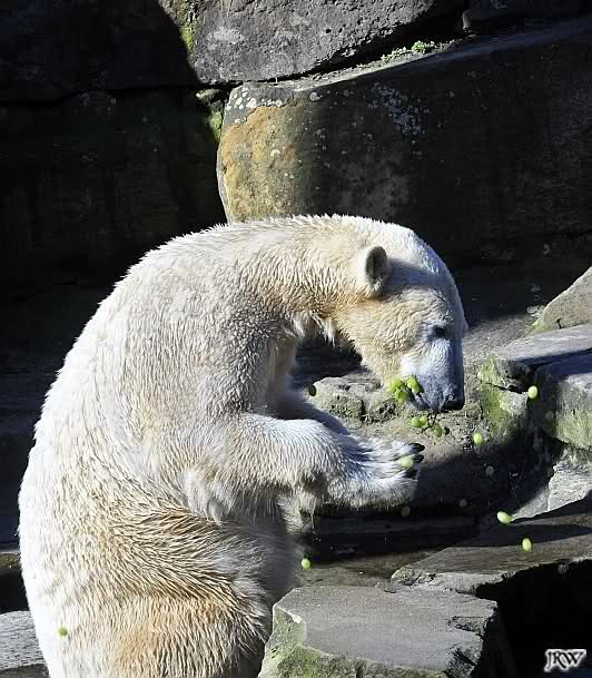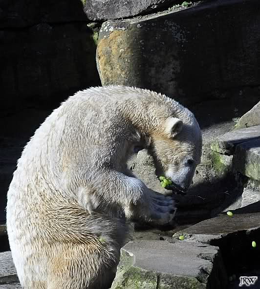 Hmm Knut, kann es sein, dass Dein "Kinderarzt" Dich inzwischen auch im Gehege der Grossen vermutet? Dort gibt es vier Bären, die sich zwischen den Fütterungen sehr malerisch auf die Felsen drapieren.