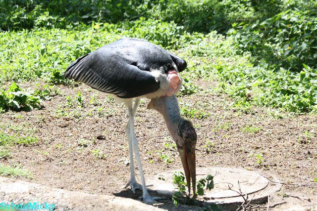 Der Marabu pfriemelte mit einem Zweig