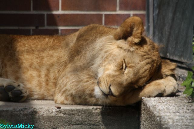 Ein kleiner Löwe wird auch mal müde