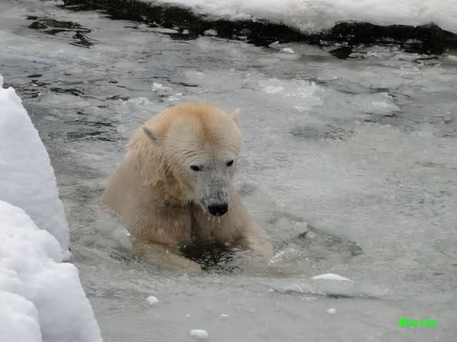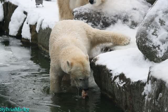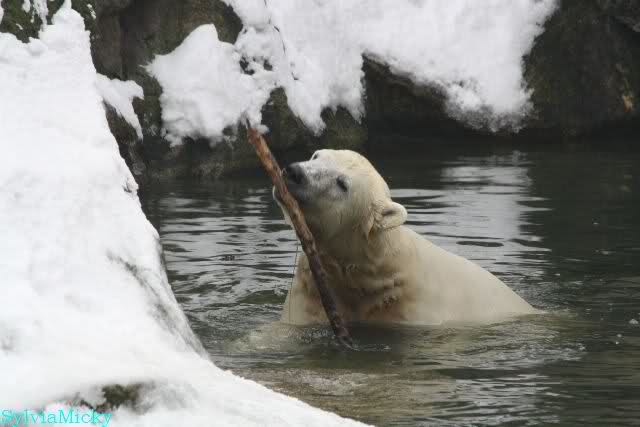 Mir wurde heute gesagt, daß Tosca und Knut heute früh wieder im Wasser gespielt haben. Ich war erst zur Fütterung da. Und wieder gab es einen großen Schritt nach vorn für Knut.