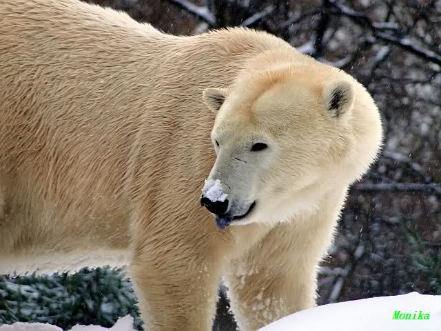 Was mir Anfang Dezember sehr aufgefallen ist, ist wie oft Knut den Besucher anschaute. Wenn ich meine Bilder aber genauer ansag, merkte ich das es oft nur scheint, das er den Besucher anschaut - seine Augen wandern sehr schnell von Besucher nach Felsen nach Essen nach Aste nach Bärinnen nach ... undsoweiter!