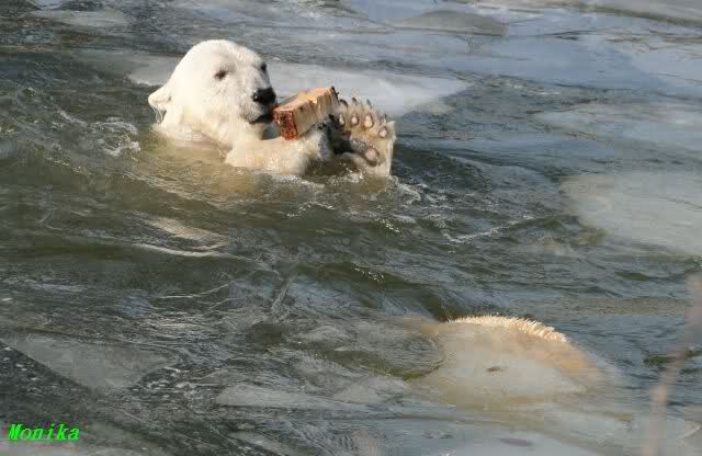 I hope that Knut will learn to get meat from iced water! Otherwise, he keep being hungry!