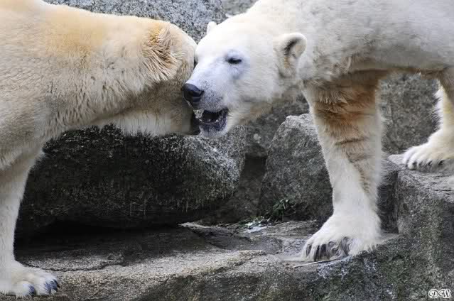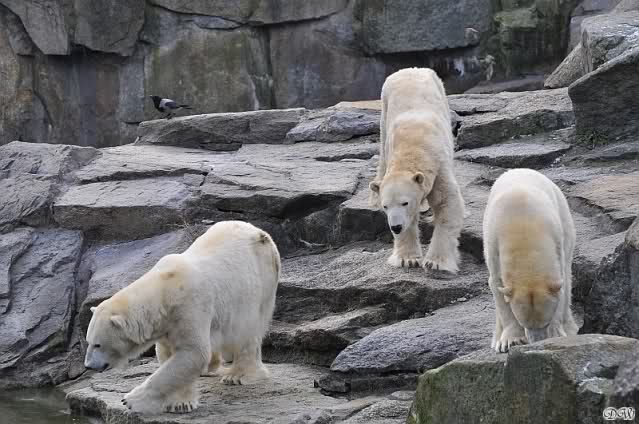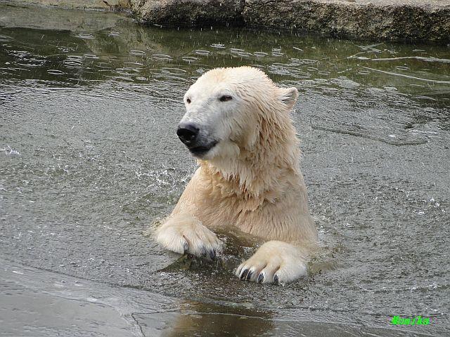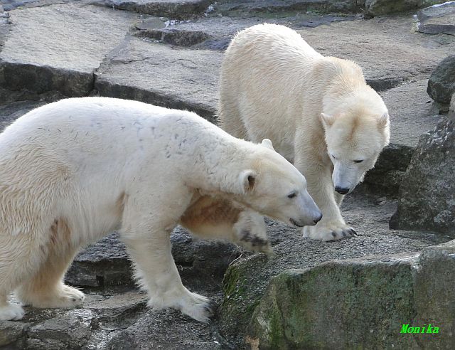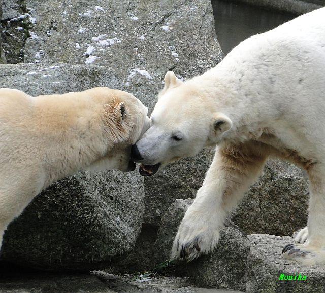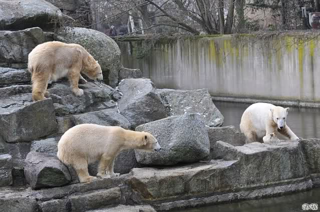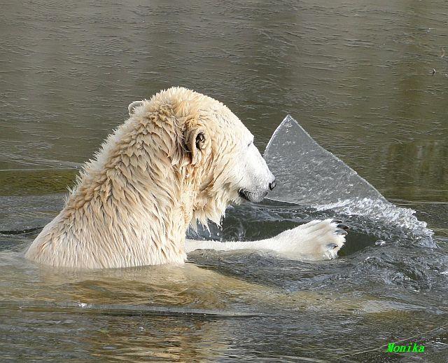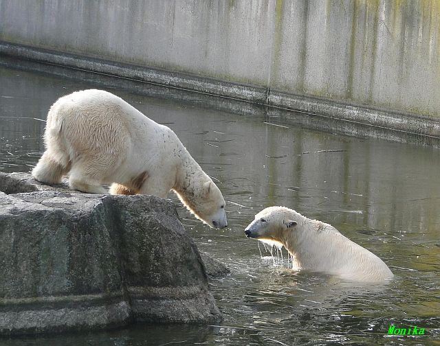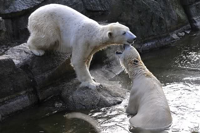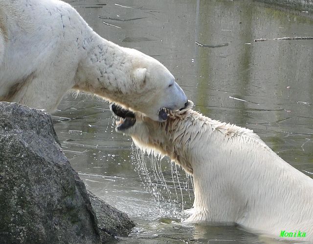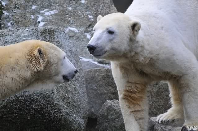 Danke für die Bilder. Ich habe Knut noch nie so weiß gesehen, wie am letzten Bild. Tosca, als die Eisbrecherin, ist sehr schön.