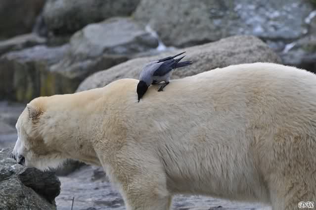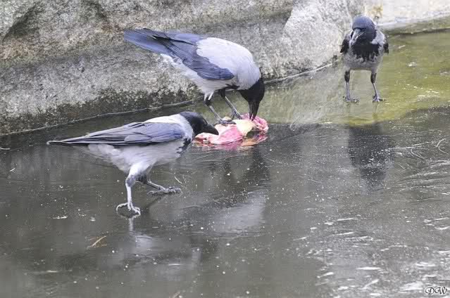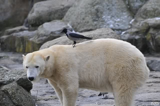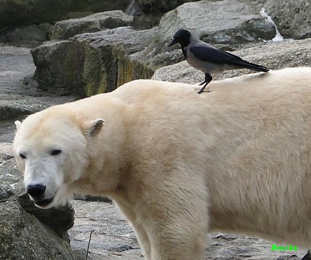 Sicher hat wollte die Krähe nicht auf Tosca landen ... hoffentlich ist Kati nicht krank und es fehlen ihr nur ein paar Kilo Fleisch.