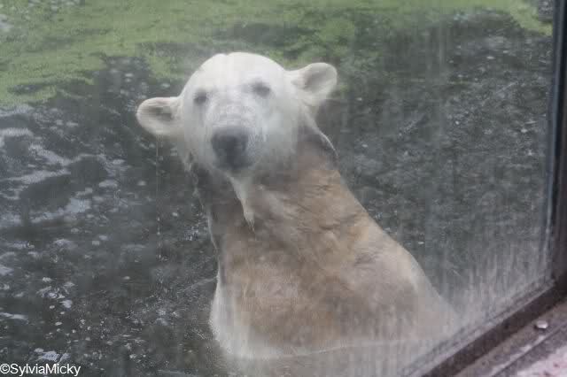 So leer wie heute um 11.00 habe ich den Zoo schon lange nicht mehr gesehen. Es lag wohl auch am Gewitter am frühen Morgen und den Regenfällen. Knut schien aber das Gewitter gut verkraftet zu haben. Er schlief um 9.00. Später tobte er sich wieder im Wasser aus.
