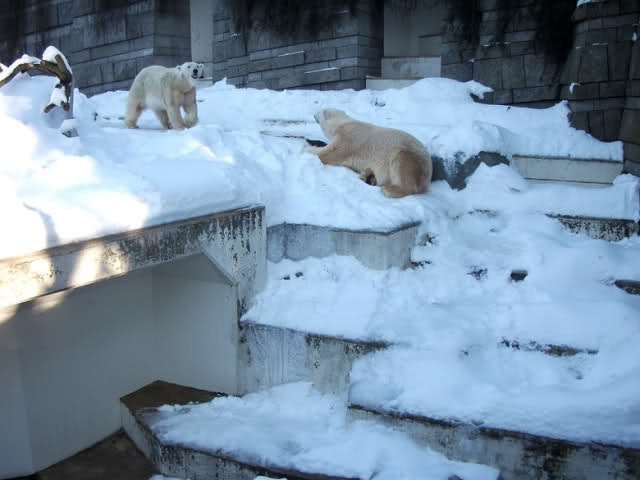 Am Donnerstag, dem 30. Dezember 2010, konnten Zoo-Besucher/innen ohne Einschränkungen den Blick auf das Eisbärenpaar genießen.