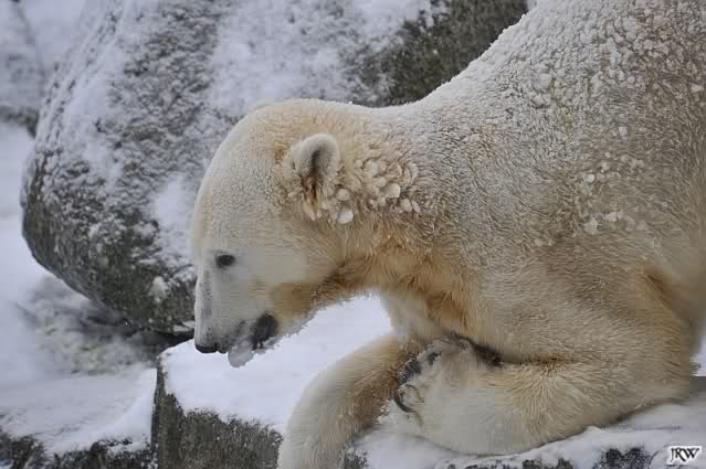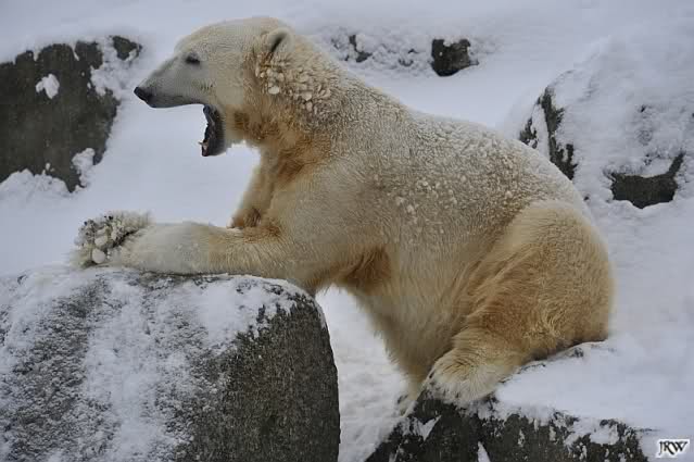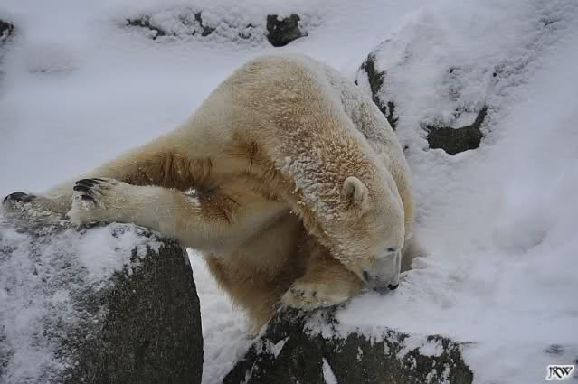 Du hast es gut beobachtet, Kälte allein scheinen auch die Eisbären (und besonders Knut) nicht zu mögen. Bei Schnee ist es eine andere Sache. Da haben sie viel Freude dran. Knut hatte endlich wieder etwas Weiches unter seinem Hintern . Das schien er zu genießen.