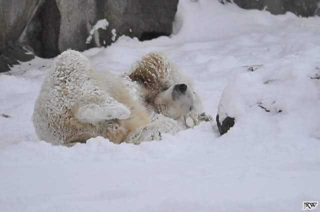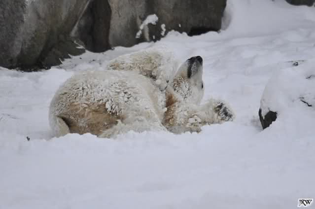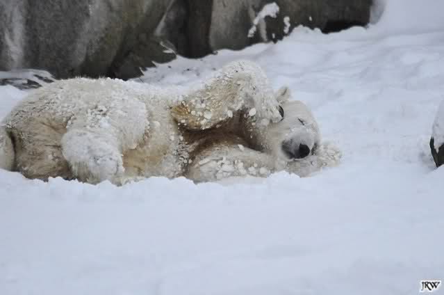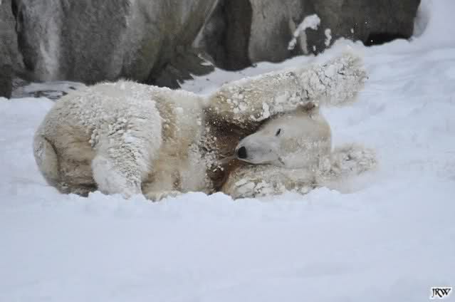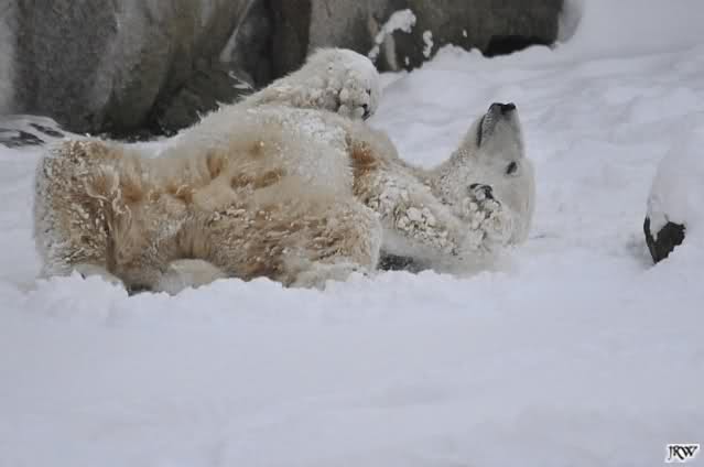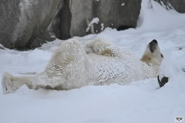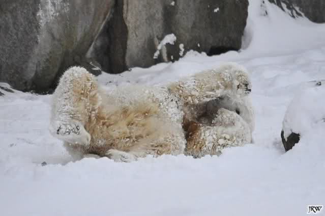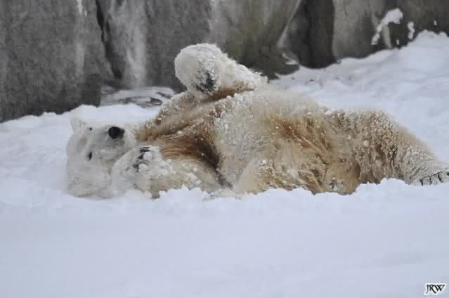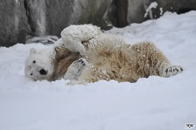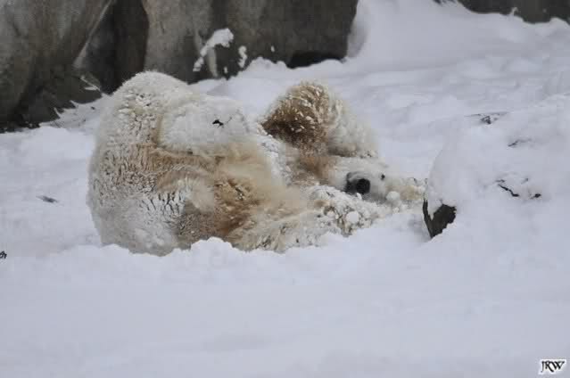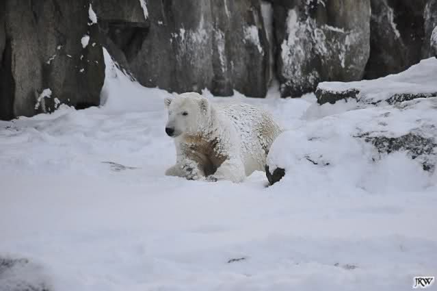 schön wie Knut vergnügt im Schnee rumkugelt