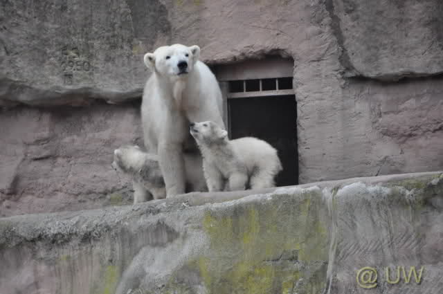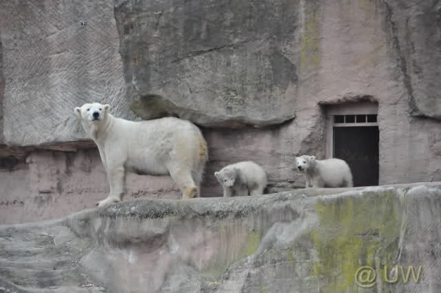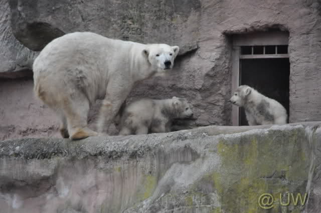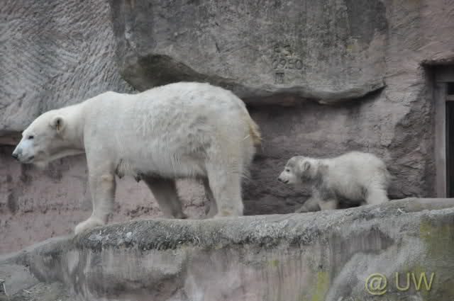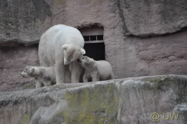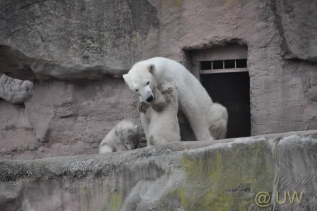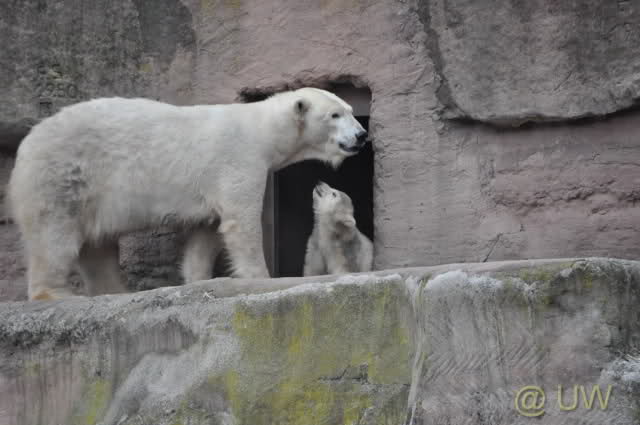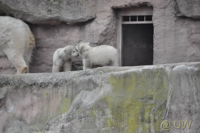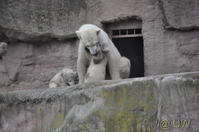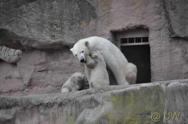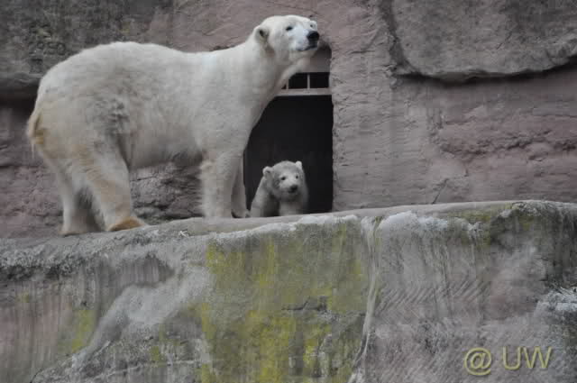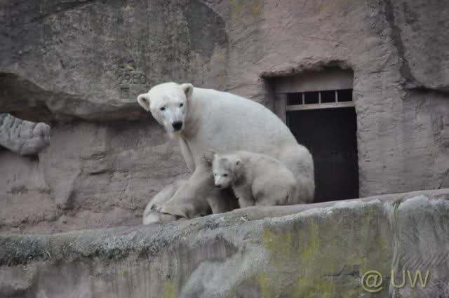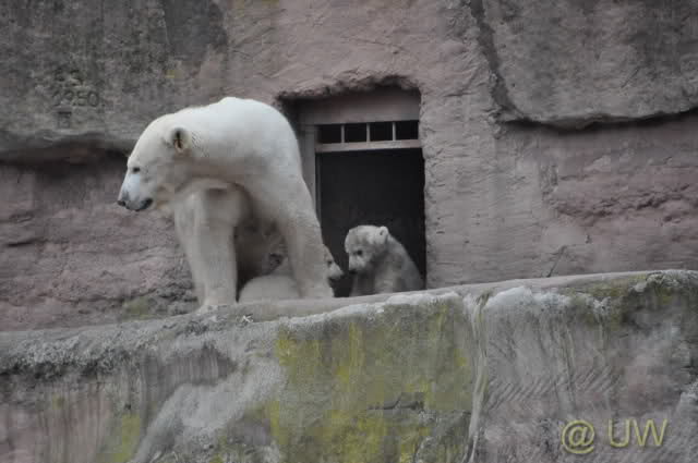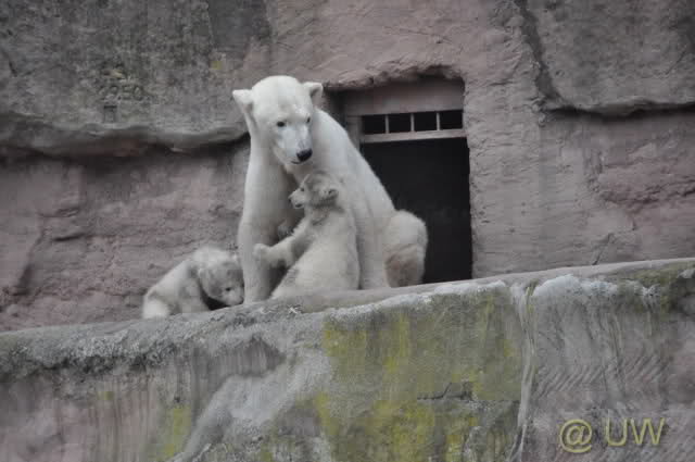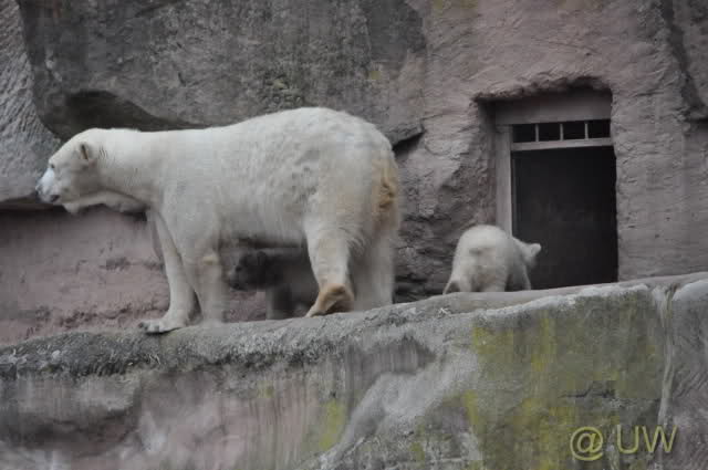 Gestern hatte ich Glück, die gesamte Eisbären-Family angucken zu dürfen. Vera's Blick ist häufig auf das Nachbargehege gerichtet, wo die männliche Gefahr lauert. Eine Eisbärinfreundin aus Moskau kennt Vera aus dem dortigen Zoo. Habe nun auf der HP vom Tiergarten nachgelesen und es stimmt definitiv, dass Vera in Moskau geboren ist.