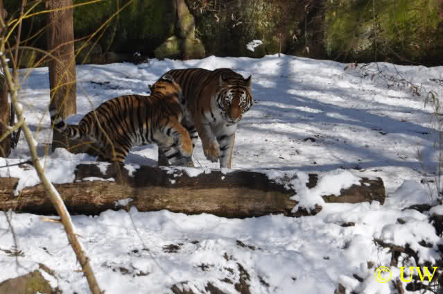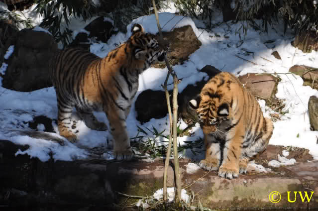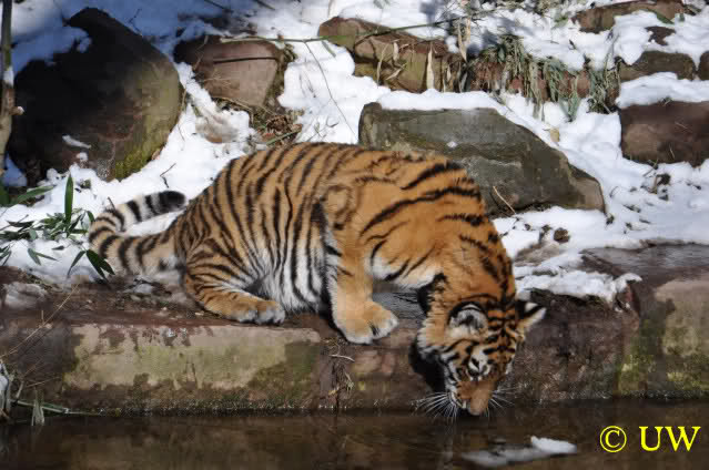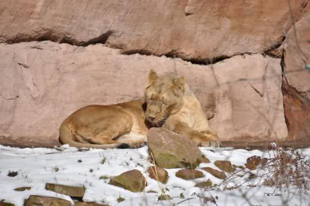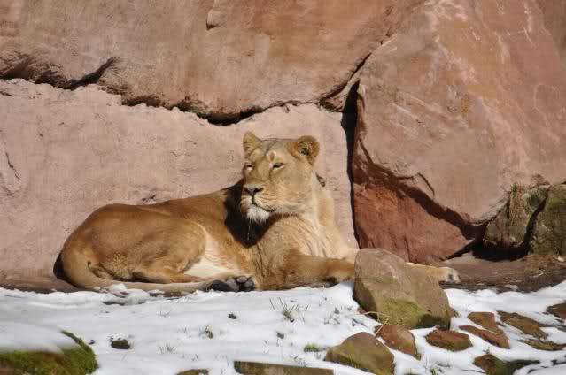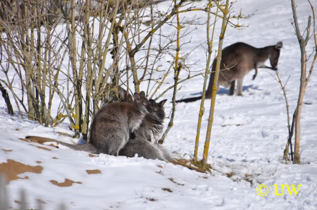 Der Winter war noch einmal in den Tiergarten zurückgekehrt. Da die Sonne schien waren viele Tiere, die sonst wohl kaum Schnee sehen, draußen und ließen es sich gut gehen.