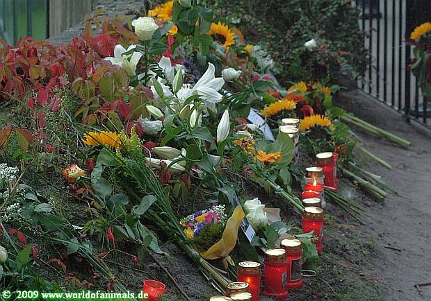Viele Menschen hatten Blumen mitgebracht, ebenso Gedichte, Fotos. Auch Grabkerzen wurden am Gehege aufgestellt. Dabei wurde immer auf die Sicherheit geachtet.