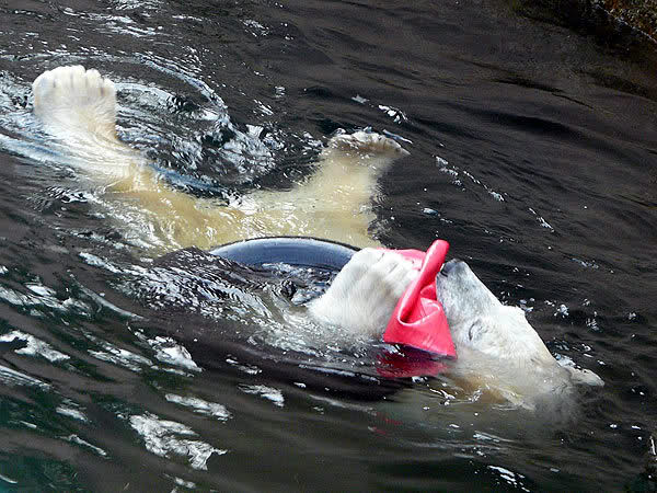 Vor allem Rasputin! Bei ihm löst der Sonnenschein scheinbar Kreativität aus. Der russische Bär ist nicht nur ein Eisbär – nein! Er ist ein … ich würde fast sagen … ein russischer Eisbärenmodezar. Stolz präsentiert er den neuesten Look für Eisbären in diesem Frühjahr.