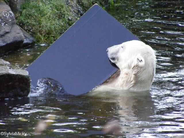 Here are now my next picture serie from Knut and his new *surf board* or *mirror*. Enjoy our polar bear kid.