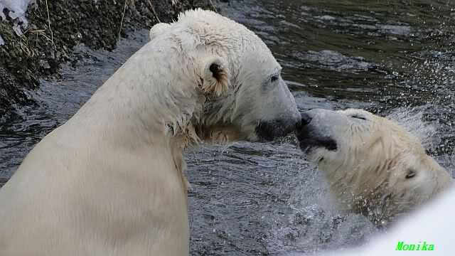 Thank you to Monika and Hartmuth for you photos and reports. The two bears are in very different moods right now! It looks like Knut will be glad when the ice melts\