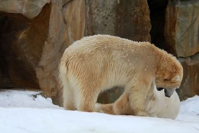Als ich den Zoo verließ, lag Knut immer noch unten und tat das was er so gerne macht, er pfriemelte am Eis.