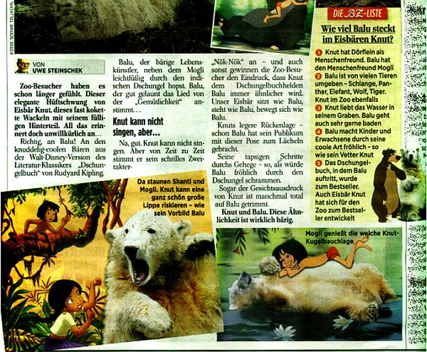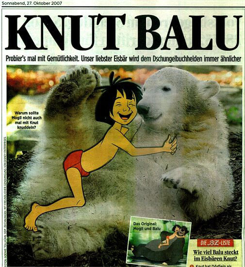 Und Knut gibt es heute in einer Berliner Zeitung mal im Vergleich mit *Balu*, den Bären aus dem Dschungelbuch