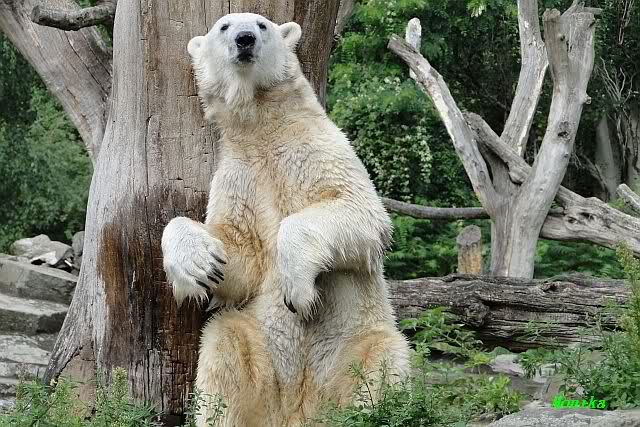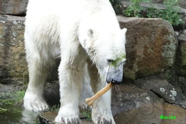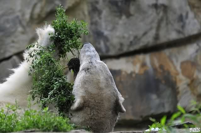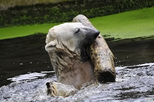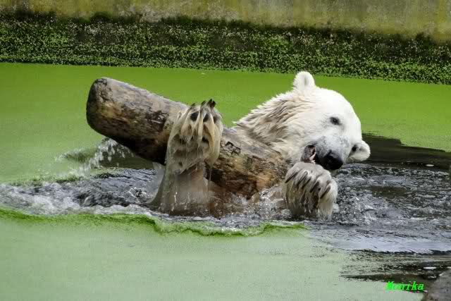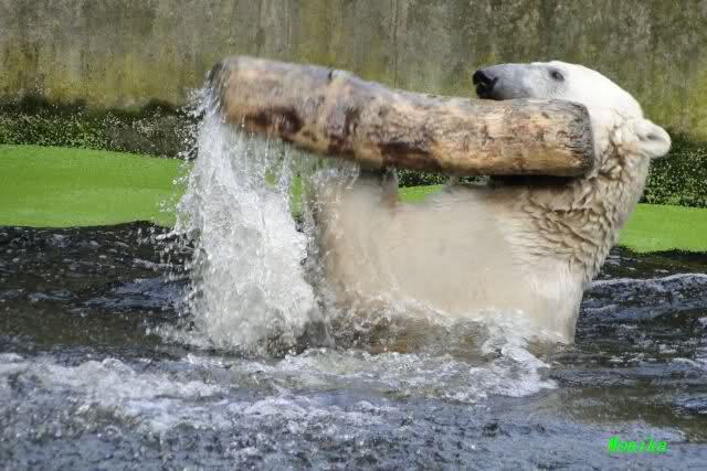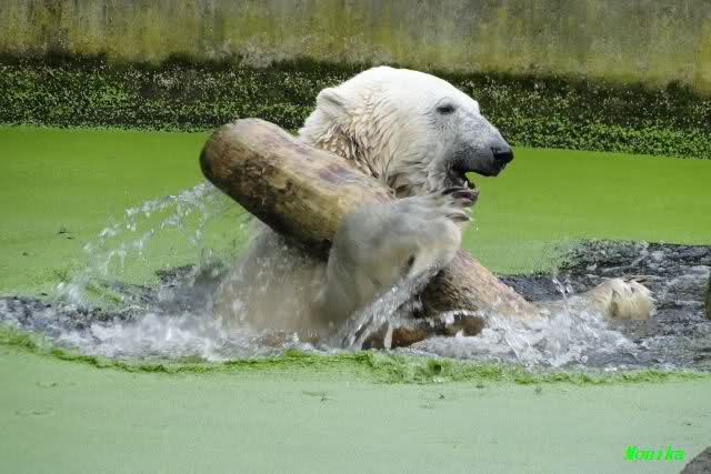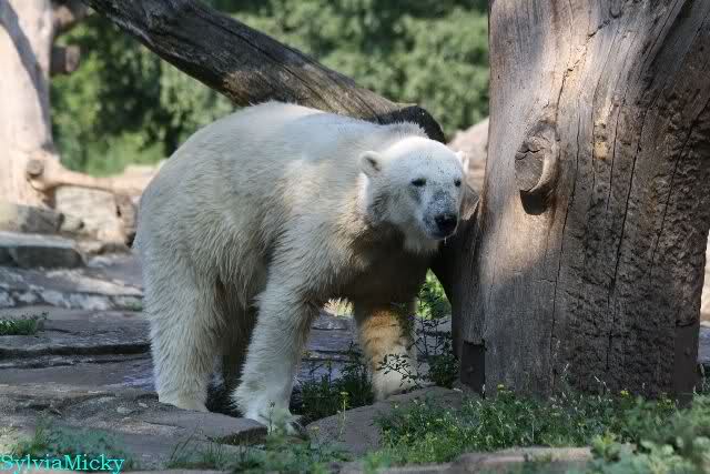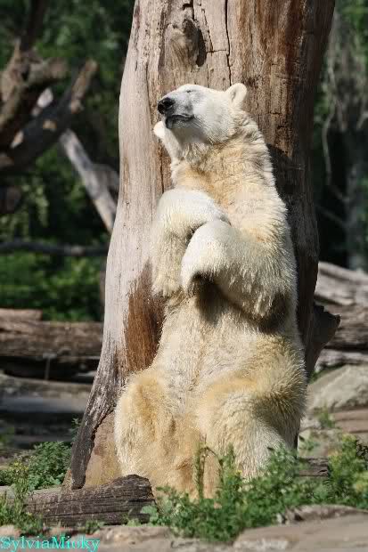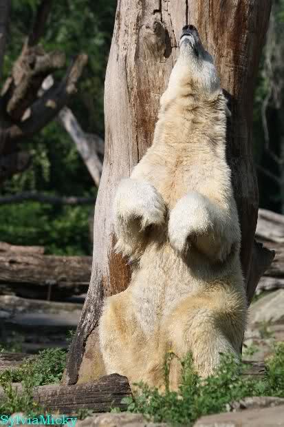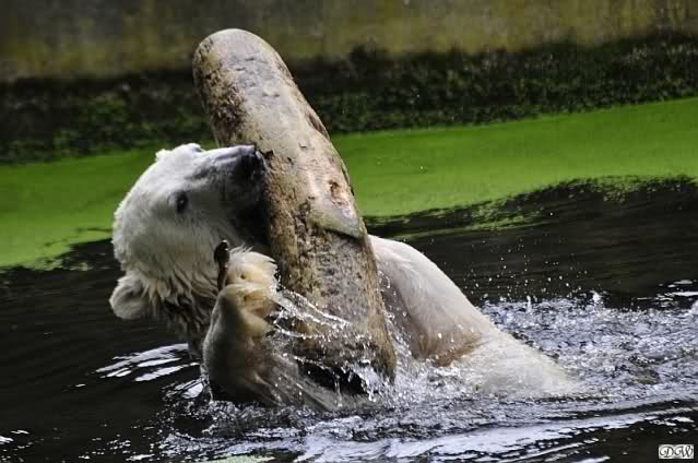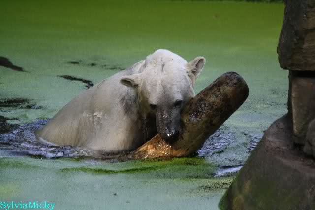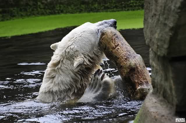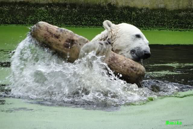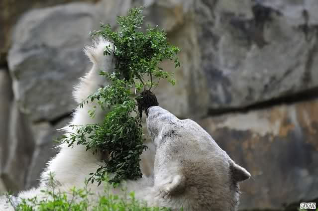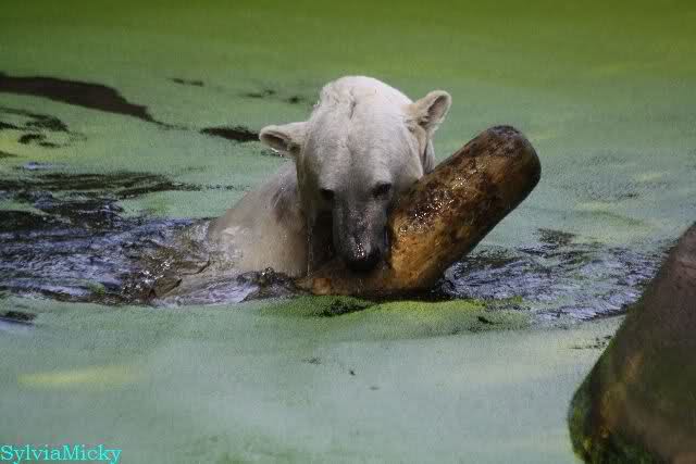 ... am Tag nach "Bellas" Abreise trainierte Knut die Muskeln wieder mit seinem geliebten Baumstamm ...