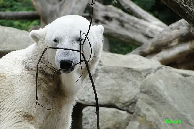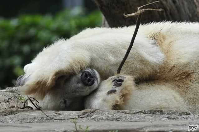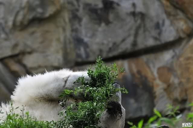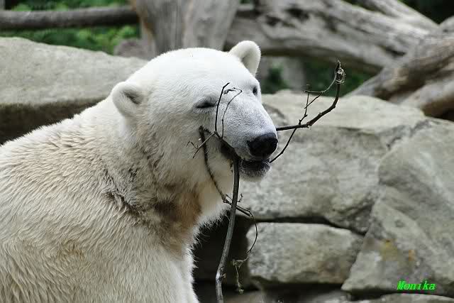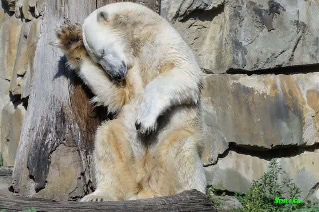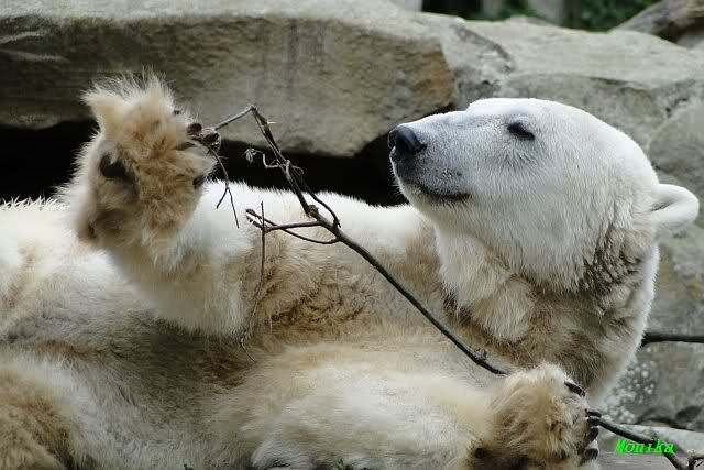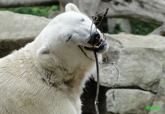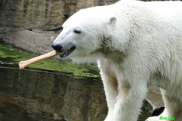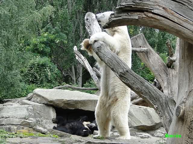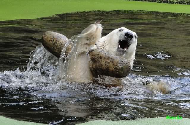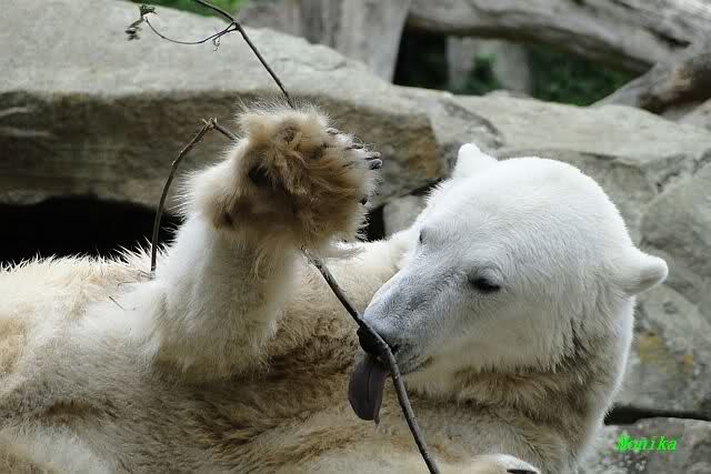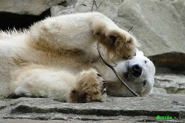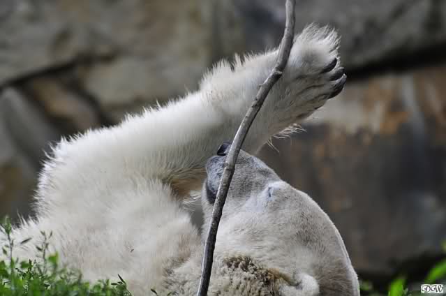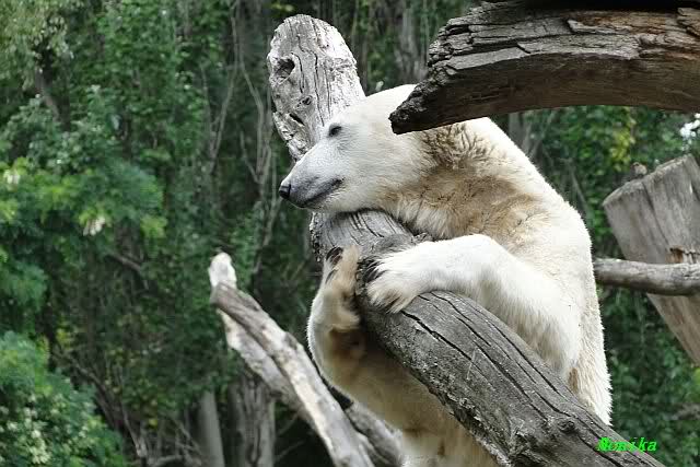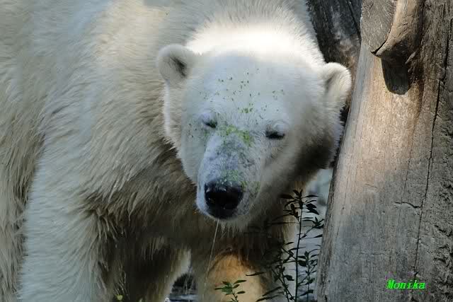 ... am Tag nach "Bellas" Abreise trainierte Knut die Muskeln wieder mit seinem geliebten Baumstamm ...