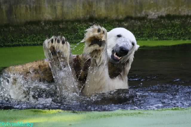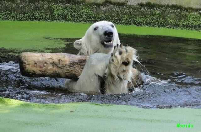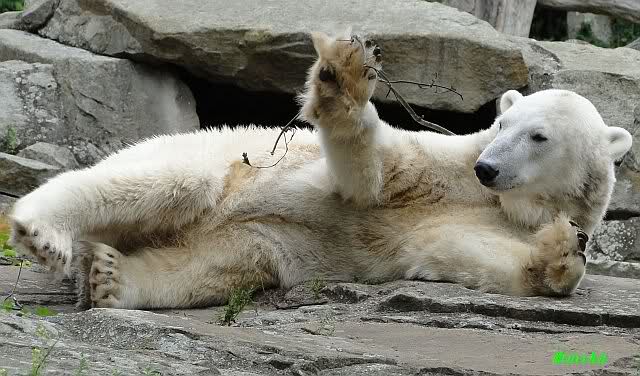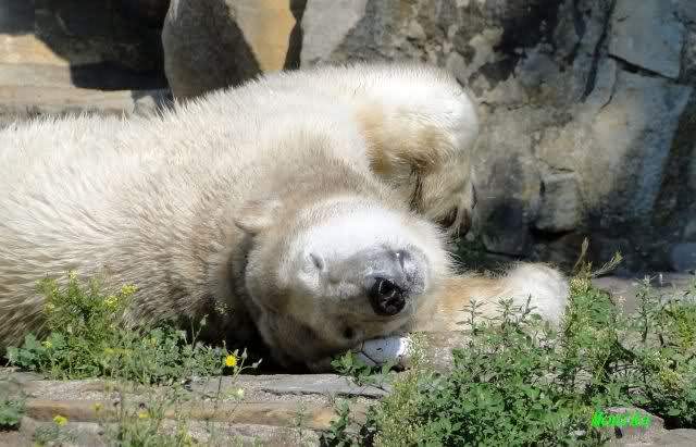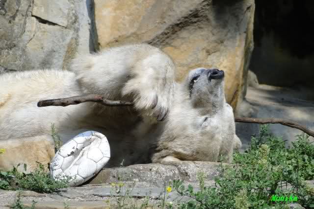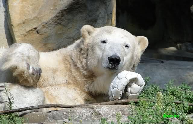 Von wegen nur handaufgezogene Bären würden mit den Besuchern spielen. Hier ist ein Video vom vorigem Jahr das zeigt, wo Yoghi mit den Besuchern Ball spielt. Wenn man auf You Tube "Münchner Eisbären" eingibt, findet man noch mehrere kleine Videos über die spielenden Bären.