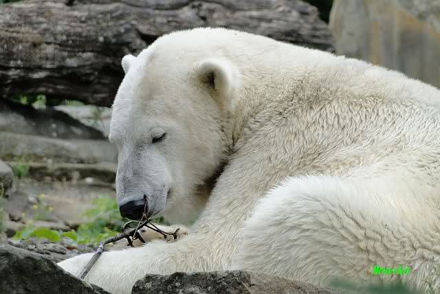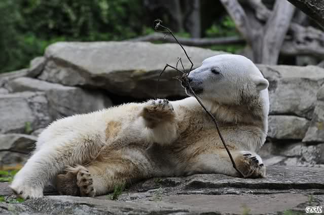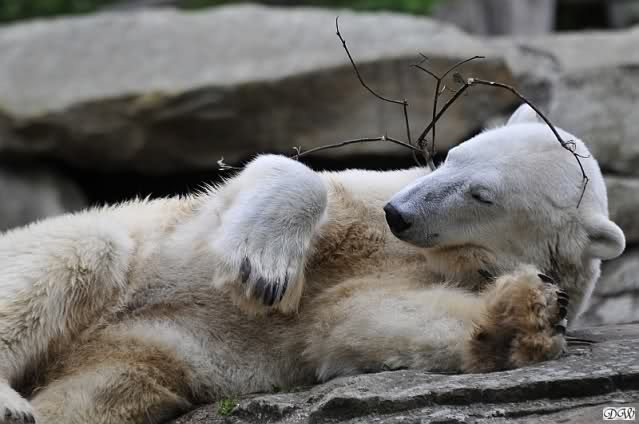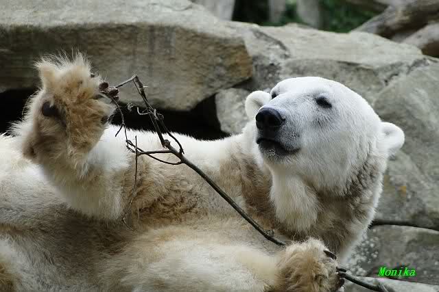 Anschließend friemelte Knut mit einem kleinen Zweig, bis er darüber einschlief.