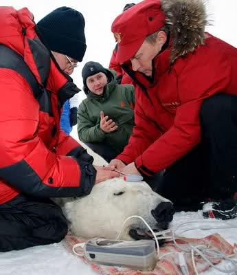 "Habitation is getting more and more difficult because of the melting ice caps. It is important for us to know the movements of the polar bear, how it reproduces and how it rears its young," Putin said.