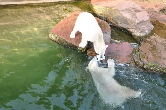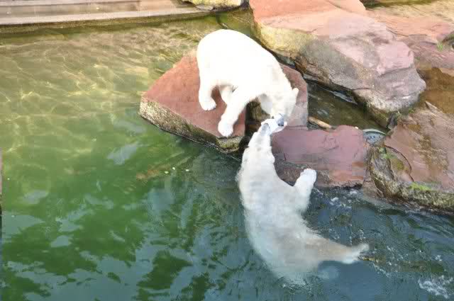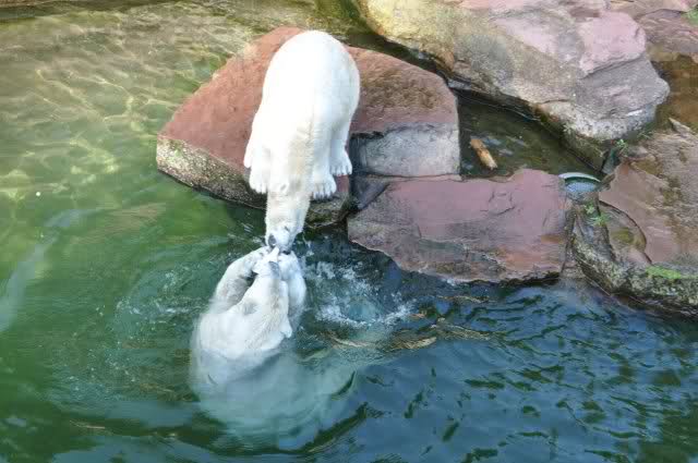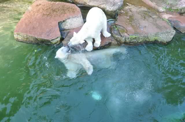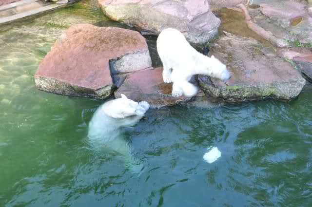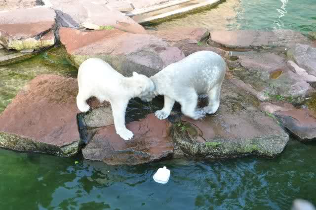 Danke, Uli, für die weitere Bilderserie von Flocke und Rasputin. Einfach herrlich anzuschauen wie Eisbären Kids spielen können. Aber langsam schmilzt auch das Eis zwischen Giovanna und Knut. Flocke und Rasputin haben da zeitmäßig einigen Vorlauf.