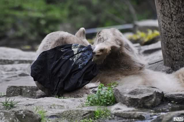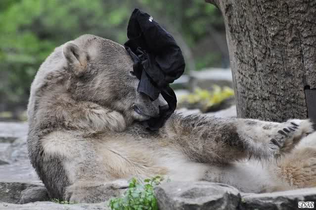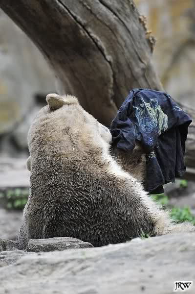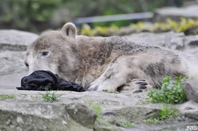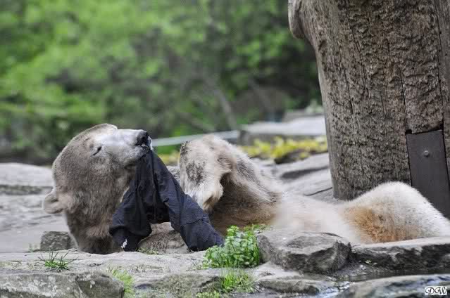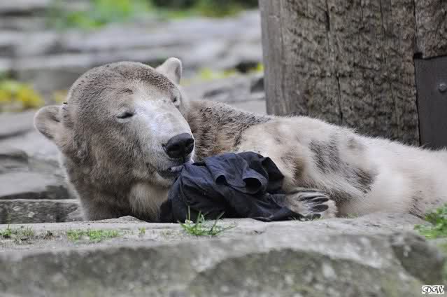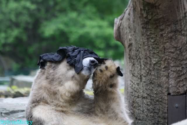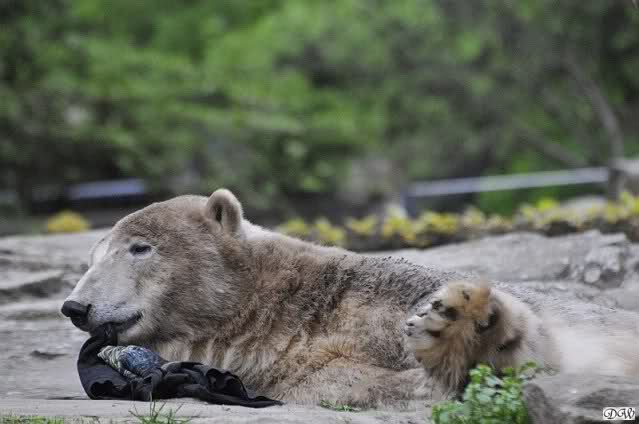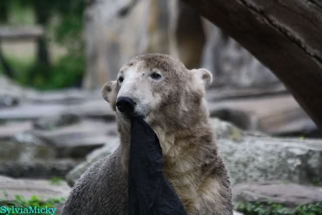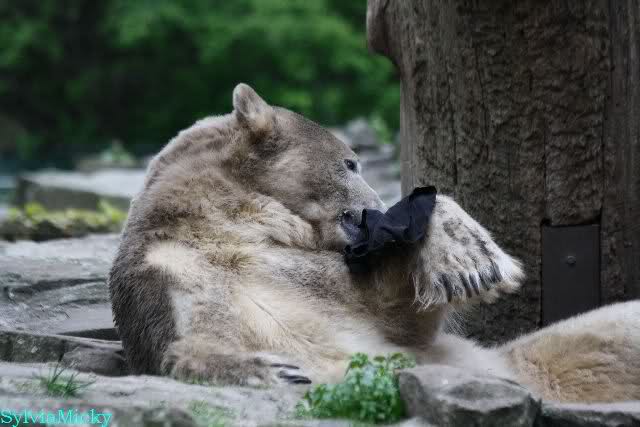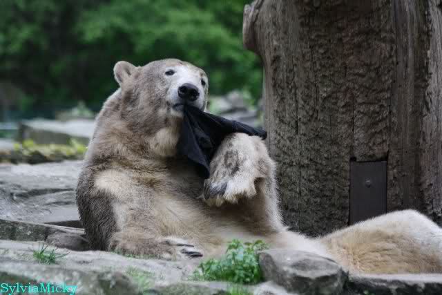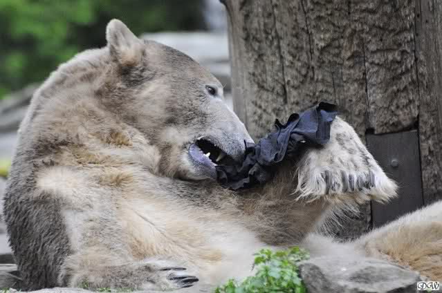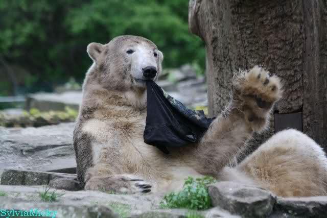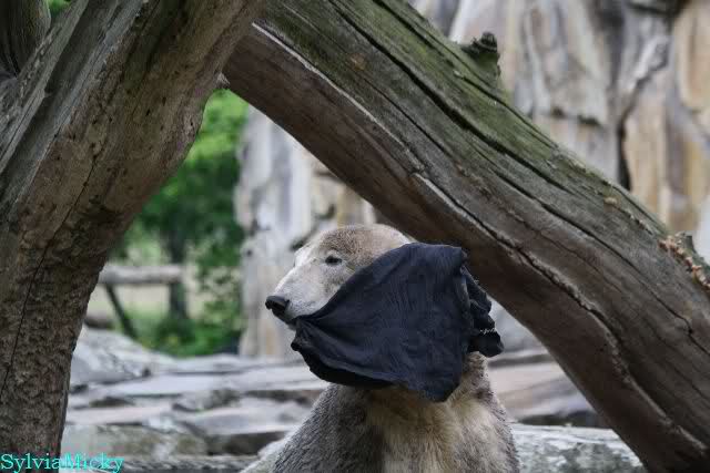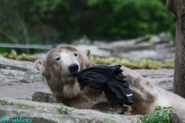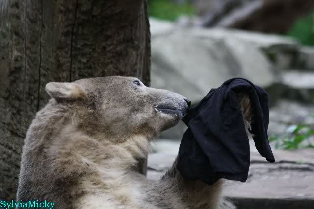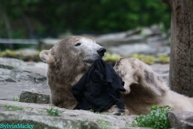 Danke für die neuen Fotos und für das Video vom Knut mit dem Schnuffelshirt. Wie sanft geht dieser doch schon große Bär mit dem T-Shirt um. Das ist inzwischen zum Highlight am Abend im Zoo geworden Einfach faszinierend.