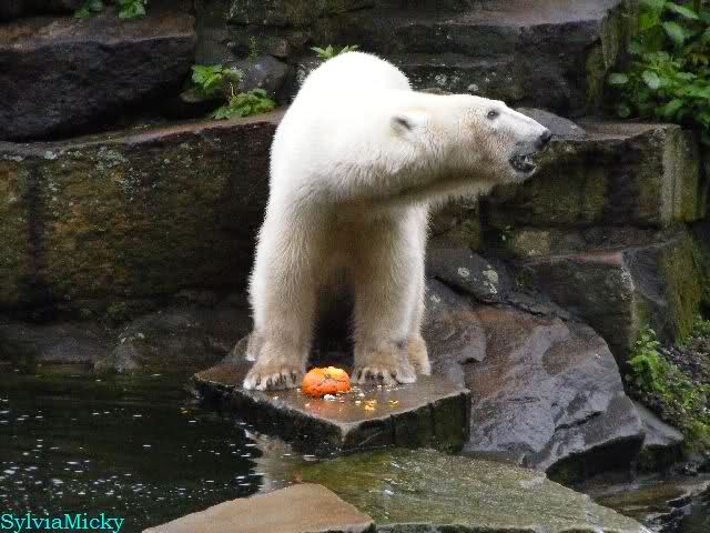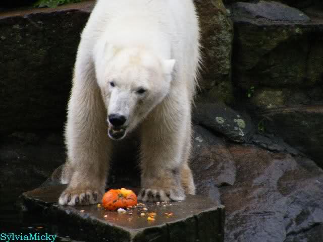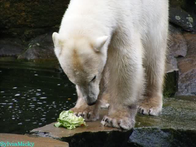 Zur Fütterung gab es u.a. einen Kürbis, den Knut aber liegen ließ. Genauso den Salat. Gianna freute sich. Sie fraß, wie immer die Reste.