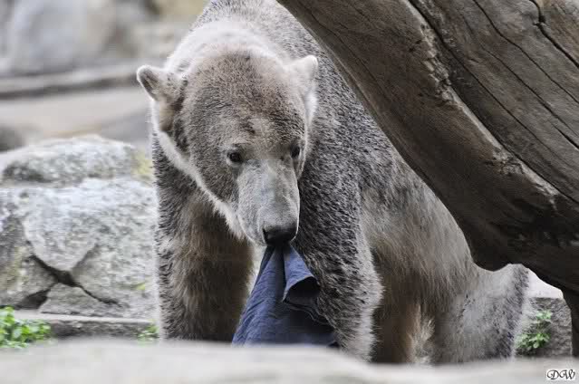 Da ja der Zoo trauriger weise nicht in der Lage ist, Sand aufzuschütten, fing Gianna schon mal an den betonierten Sand aufzugraben. Schlaue Bärin