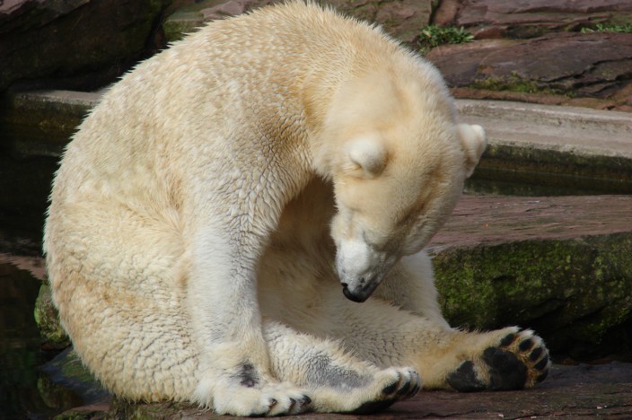 Und hier ein paar Fotos von Felix. Anfangs war er am Rumliegen und Dösen, aber dann hat er sich erstmal mit Hingabe von einem Eisbären in einen Dreckbären verwandelt