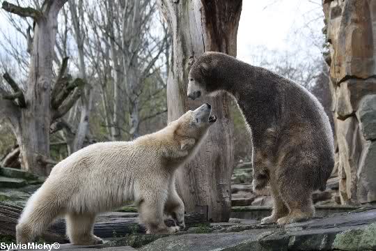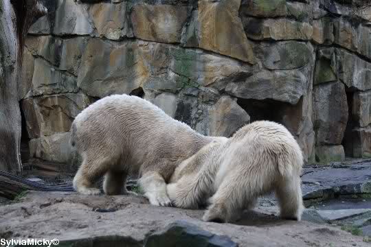 erst einmal ein grosses Danke an die Fototanten SylviaMicky und Monika sowie dem Fotoonkel Hartmuth für die wunderbaren Fotos der Eisbärenliebe. Monika, was das Verbot für Gianna angeht, Knut den Bart auszuzupfen, bin ch Deiner Meinug Er soll ihn noch eine Weile behalten.