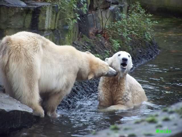 first i will say thank you to all fotographers of our polar bears in love. The series of Monika, Hartmuth and SylviaMicky were great. But one has been right: We had to forbidden Gianna, that she takes out Knutis beard. He need him for a long time now.
