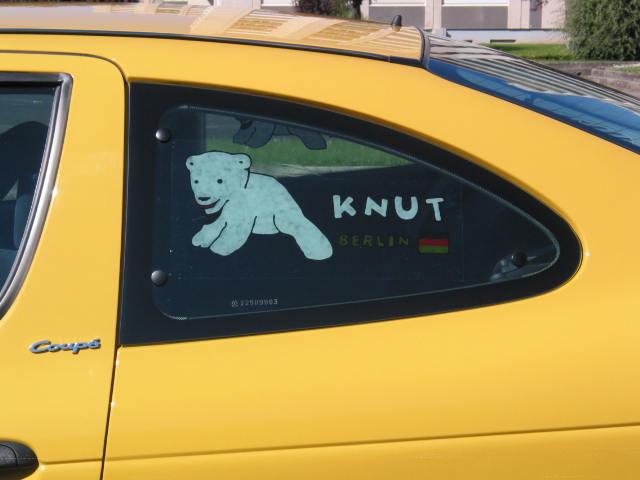 (IN FRANCE, KNUT IS WITH ME ON THE WINDOWS OF MY CAR ...)