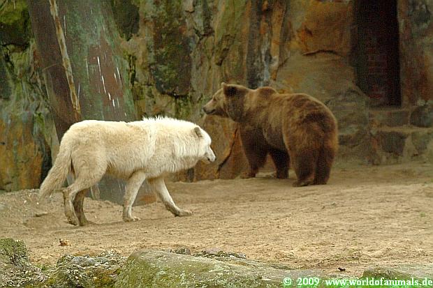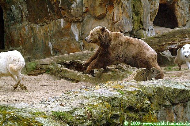Polarwölfe und Braunbären waren heute zusammen. Sylvia hat es ja schon geschrieben. Vielleicht sollten sie nach dem Tod der Wölfin ein wenig Abwechslung haben. Das nutzten sie aus und ärgerten die Bären. Siddy musste ran.