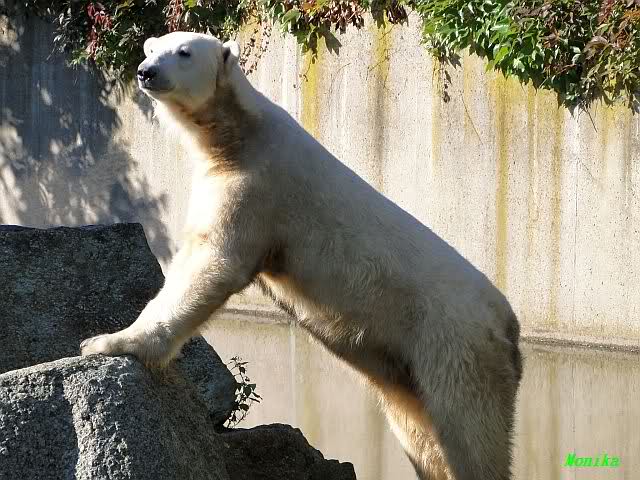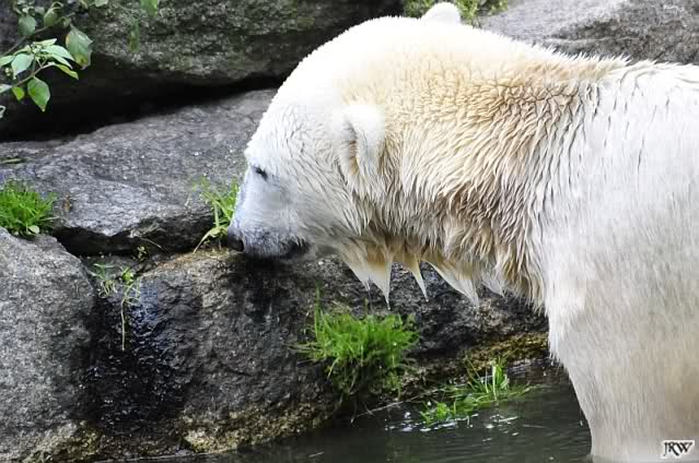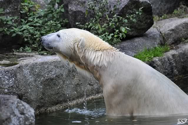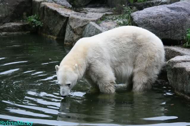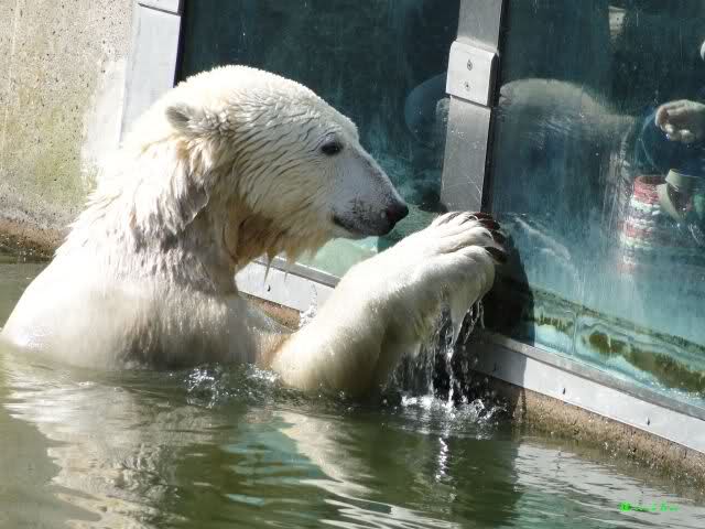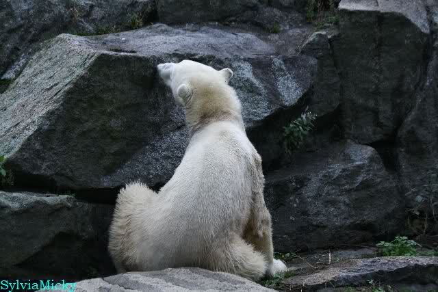 Danke auch heute wieder für die aktuellen Berichte und Fotos aus dem Zoo über Knut & Co. So richtig wohl fühlt sich der Bärenjunge auf seinem Platz an der rechten Seite der Anlage und im Wasser, incl. seinem Ausflug an die Scheibe.