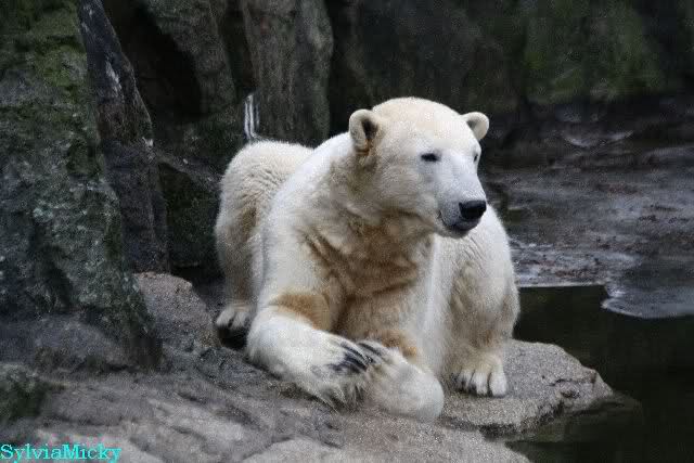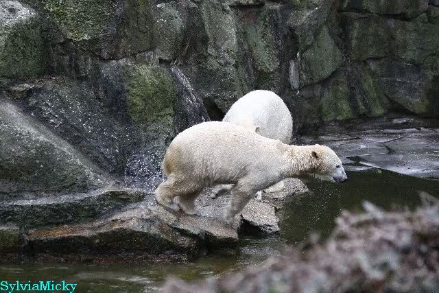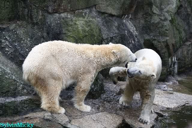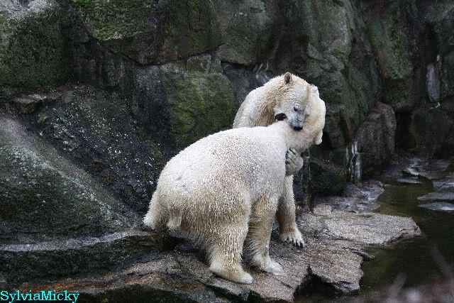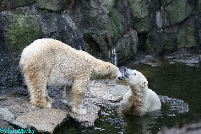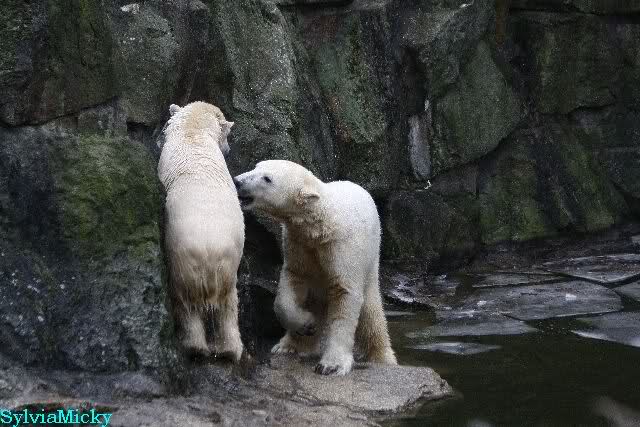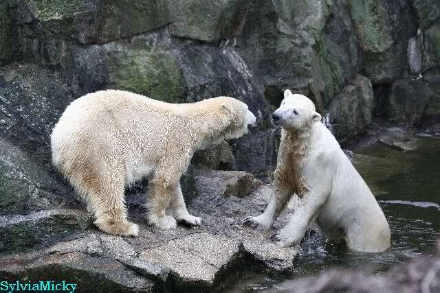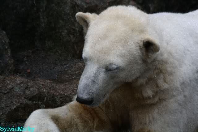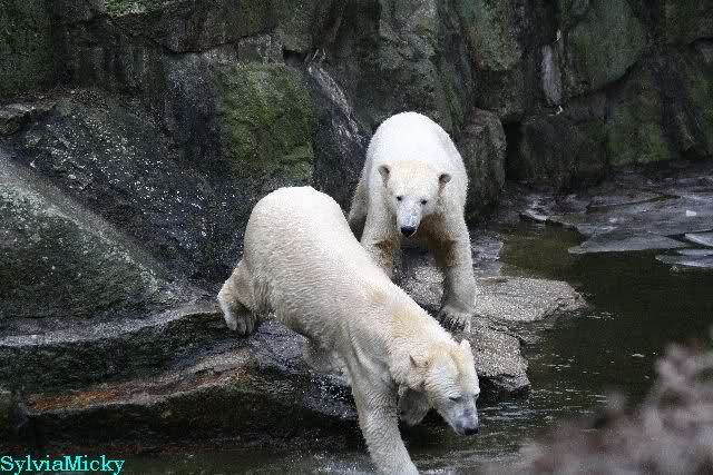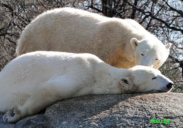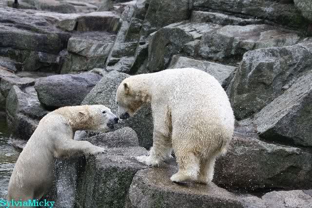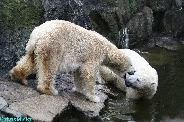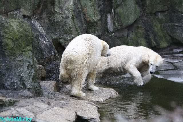 Nach dem gestrigen Toben war heute Vormittag Ruhe bei den Eisbären angesagt. Vielleicht haben sie sich ja auch die Energie für heute Nachmittag aufgehoben, um nachträglich für Hartmuth eine "Geburtstags-Vorstellung" zu geben. Ich denke mal, wir werden es später noch erfahren.