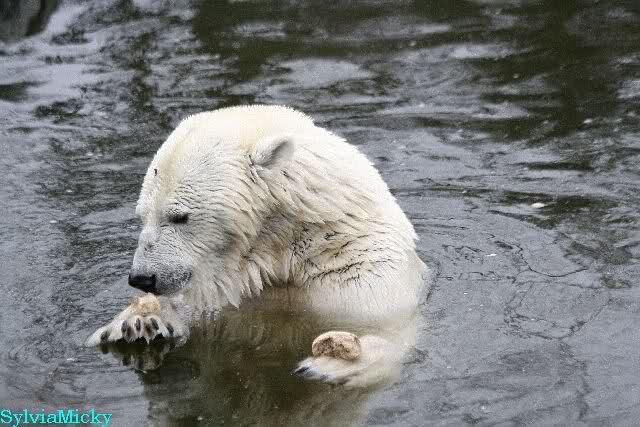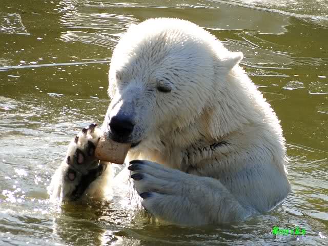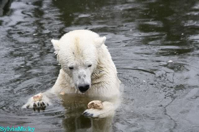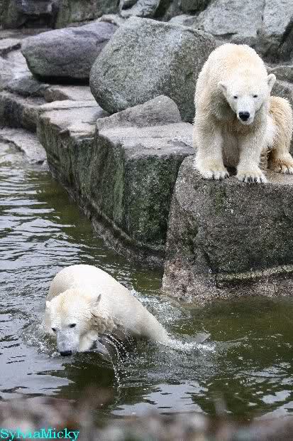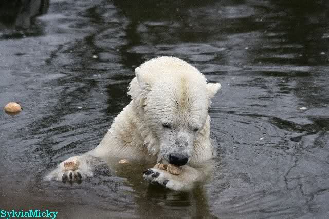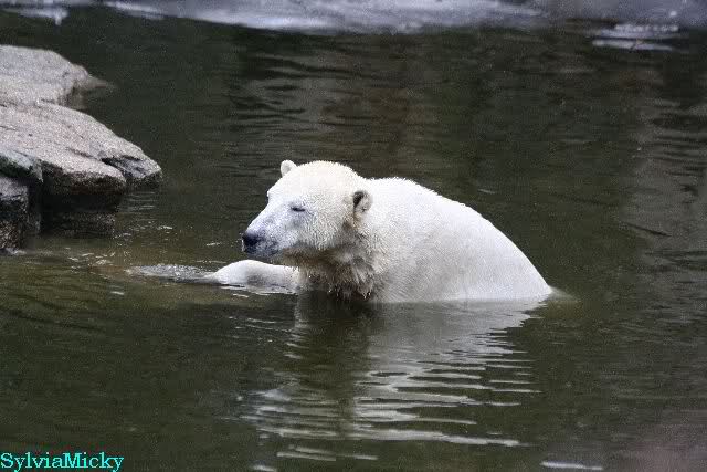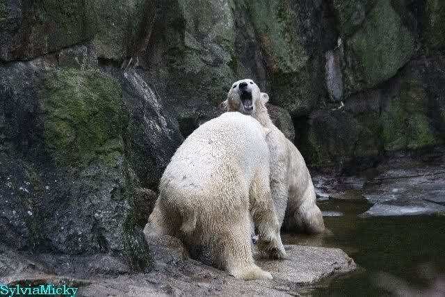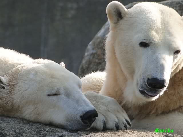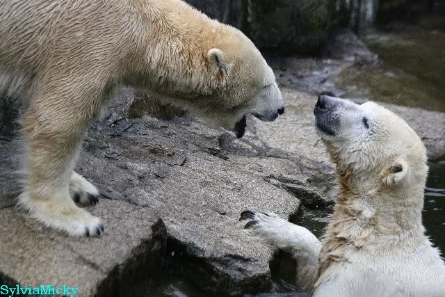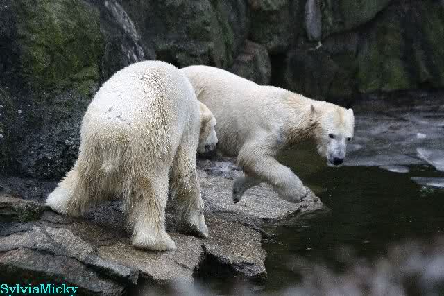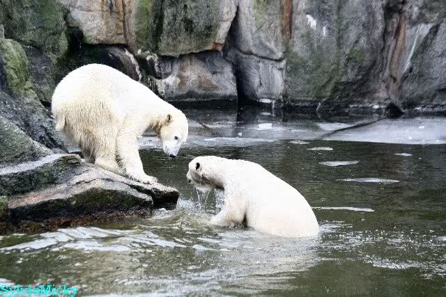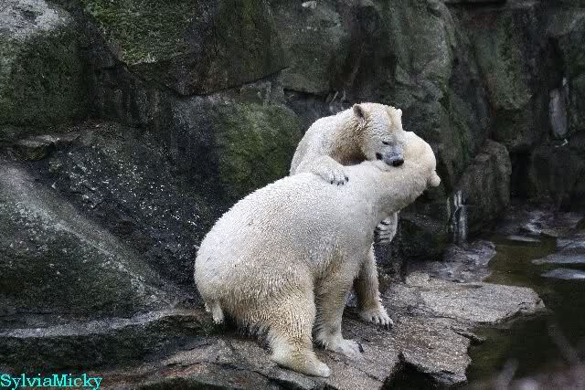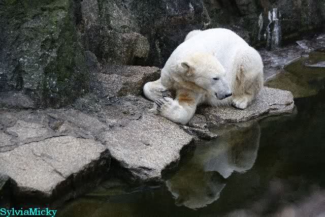 Nach dem gestrigen Toben war heute Vormittag Ruhe bei den Eisbären angesagt. Vielleicht haben sie sich ja auch die Energie für heute Nachmittag aufgehoben, um nachträglich für Hartmuth eine "Geburtstags-Vorstellung" zu geben. Ich denke mal, wir werden es später noch erfahren.