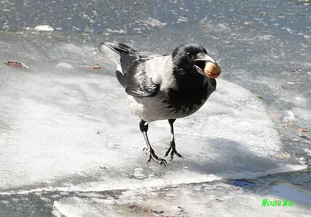 Heute gab es nach langer Zeit mal wieder Walnüsse, und schon stürmten die Krähen die Anlage.