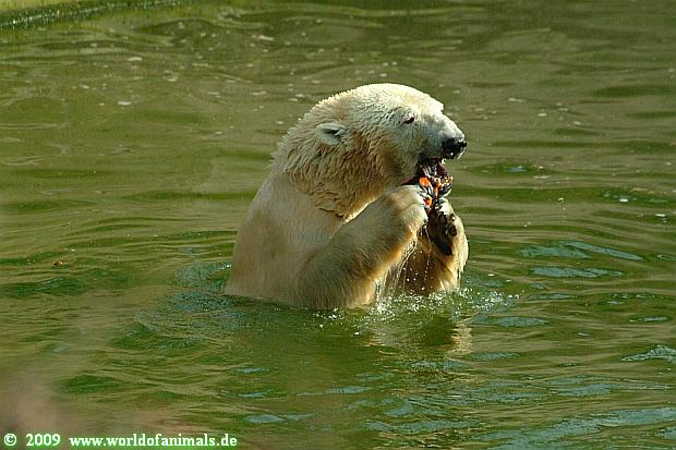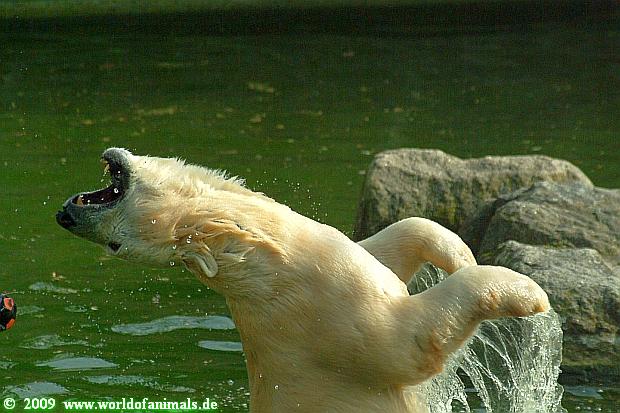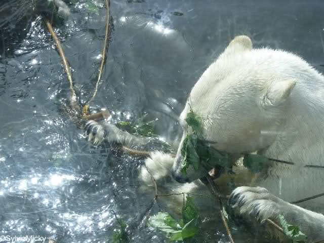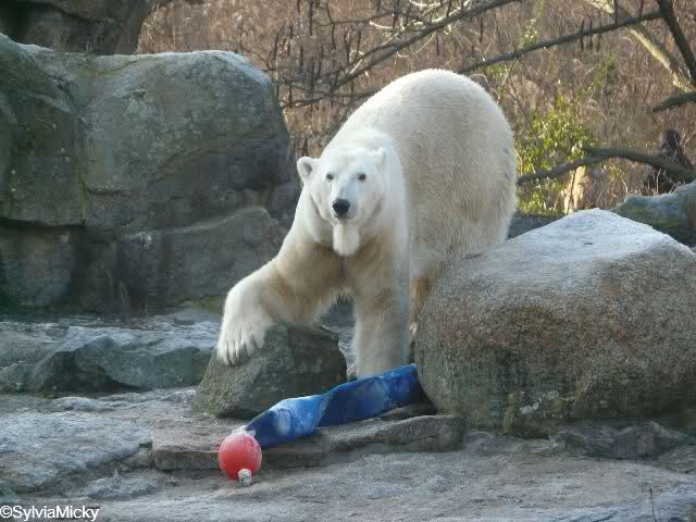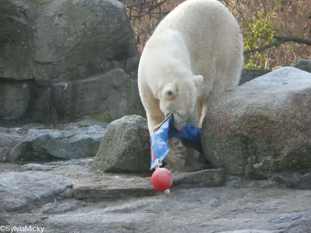 Und ob die großen Eisbären spielen würden, Doris, hätten sie nur genug Spielzeug. Das die Behauptung, die Eisbären in unserem Zoo spielen nicht, unrichtig ist, konnten heute sehr viele Besucher sehen.
