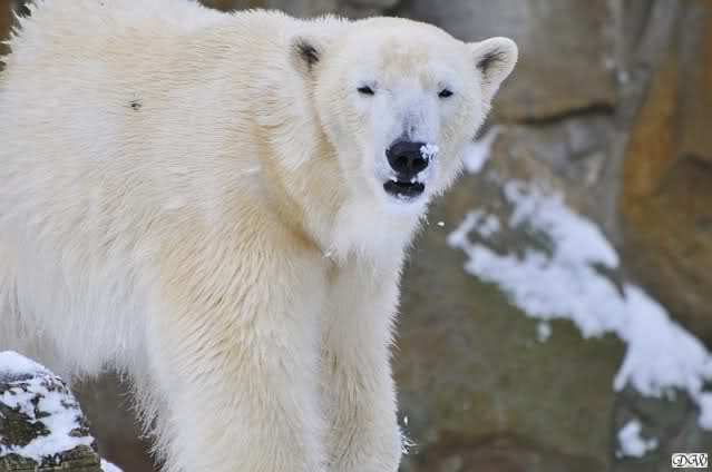Doris, Patricia - Don't you understand that Knut is a trend maker and now the latest 'thing' is to wear the moustacheon the nose instead of under it!! In my opinion it looks very chic and charmant. I guess I need binoculars when I come to the zoo in April....