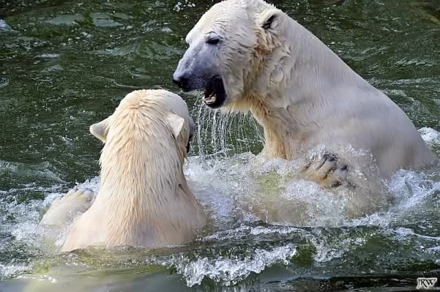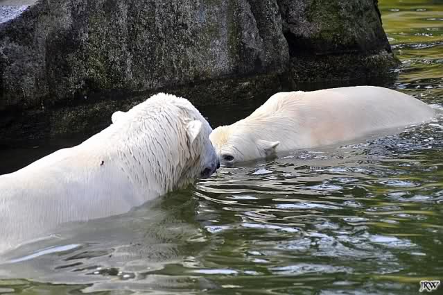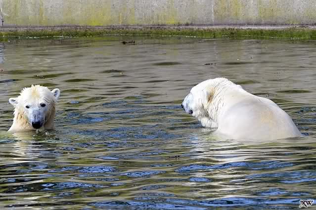 Good evening to you all international Knut friends. It was a cold and windy day in Knut City, but many visitors had fun with Knut & Co in Berlin Zoo.
