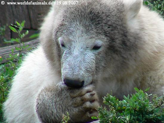Man stelle sich vor, die Knut Freunde haben auch nur den kleinsten Verdacht, daß *der Zoo* sich auch sorgt ums Tatzenlutschen, was dann wieder los ist. Die Postfächer laufen über, die Telefone stehen nicht still, die Zeitungen sind voll usw. Der Zoo ist froh, daß z.Zt. Ruhe herrscht und läßt überall verkünden, Knut gehts gut.