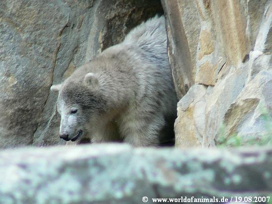 Here are some unspectaculary pictures from Knut at sunday evening, August 19th, 2007 in Berlin Zoo. Time 7.15 p.m. until 8.30 p.m. Knut came out of his cave at 7.40 p.m. Was sitting down and he began to suck with his right paw. He was sucking five times within 45 minutes.