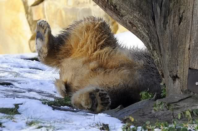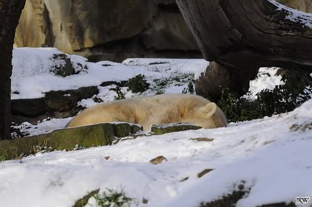 knuti,macht es sich offensichtlich,im schneebettchen so richtig gemütlich,wovon er wohl träumen mag,ist sein süßes geheimnis ,gut so.